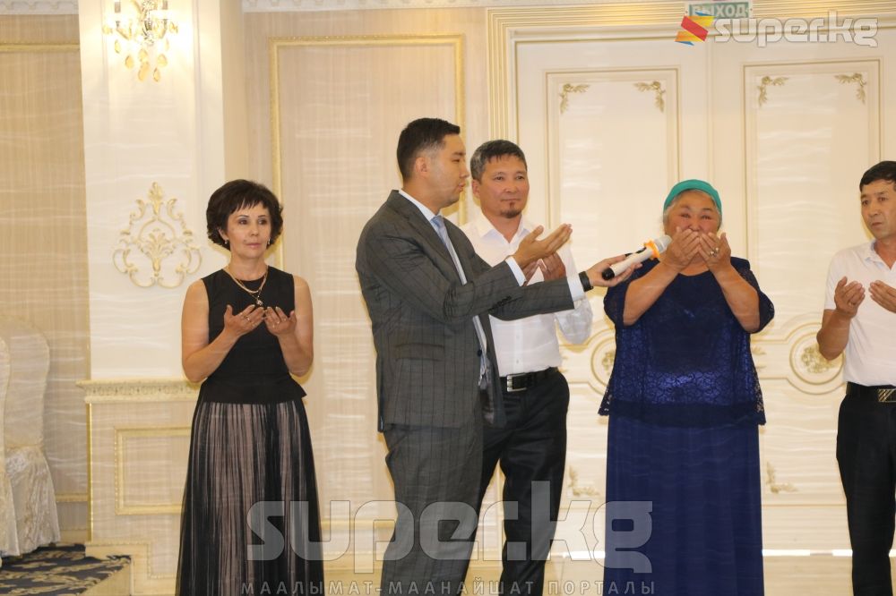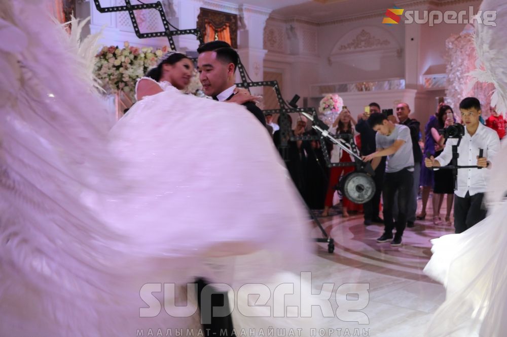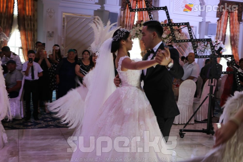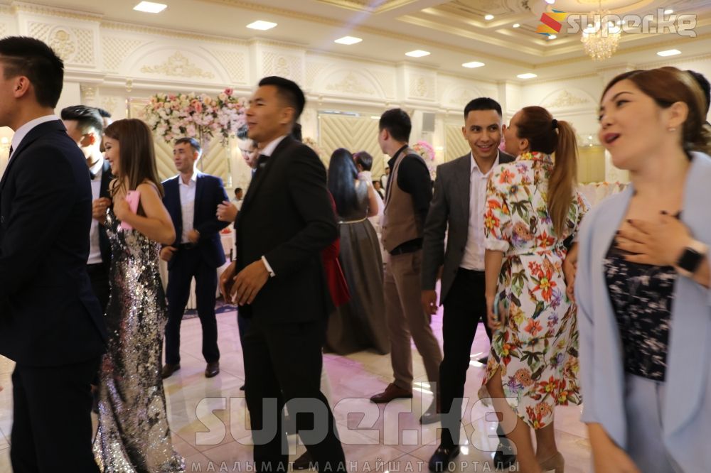 Той эки жаштын ак бийи жана никесин мыйзамдаштыруу менен башталды. Тойдо кызыктуу оюн-зооктор ойнотулуп, келген меймандар ырдап, бийлеп чер жазышууда. Түгөйлөрдүн жакшылыгы орус жана кыргыз тилинде өтүп жатат.