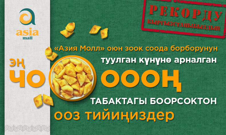 31-августта "Asia Mall" соода борборунун ачылганына 1 жыл болот. Анын урматына жана 31-август - Эгемендүүлүк күнүнө карата аталган соода борбору Бишкек шаарынын тургундарына, меймандарына бир тонна боорсок тартуулайт.