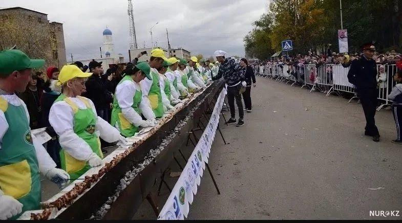 Казакстанда дүйнөдөгү эң узун шишкебек жасалды. Бул тууралуу бүгүн, 30-сентябрда жергиликтүү маалымат басылмалары жазып чыкты.