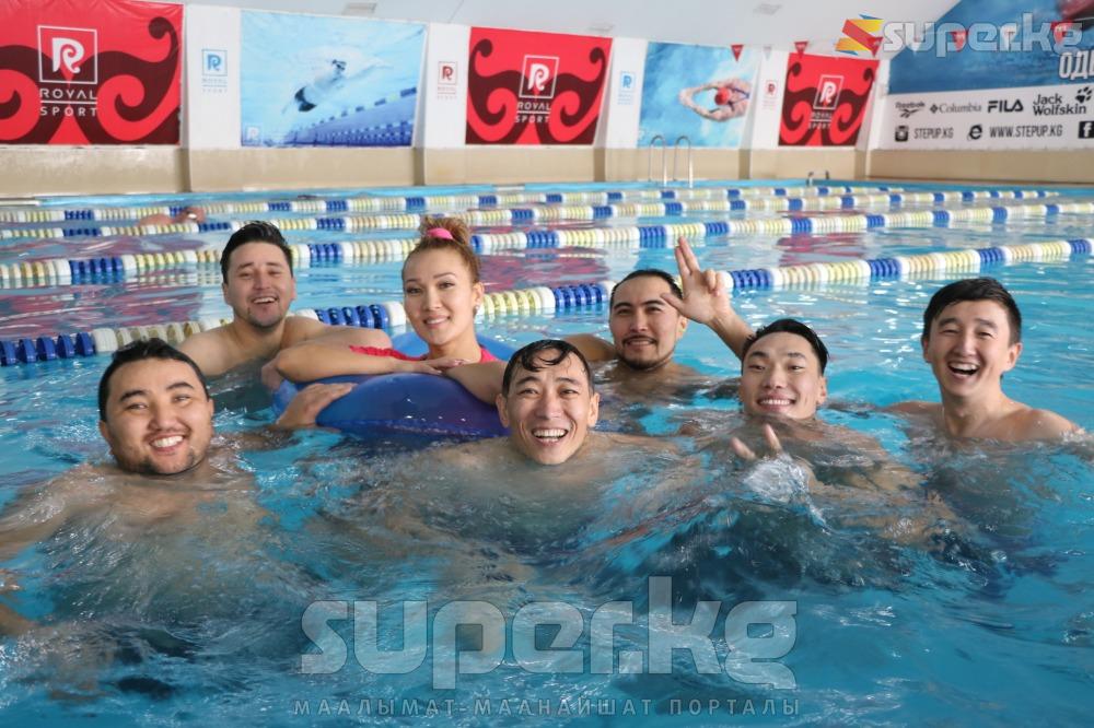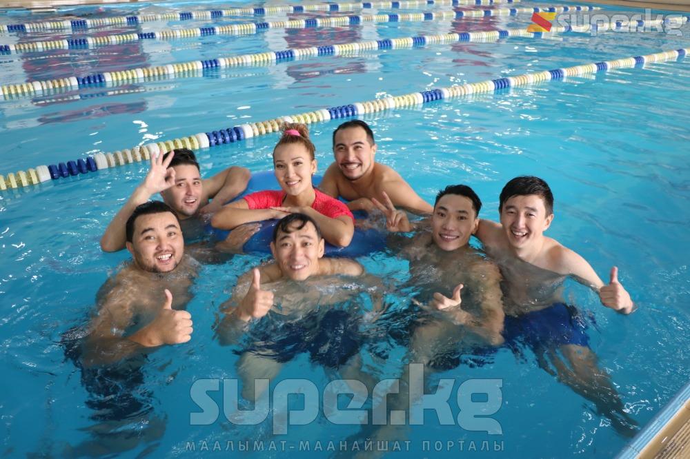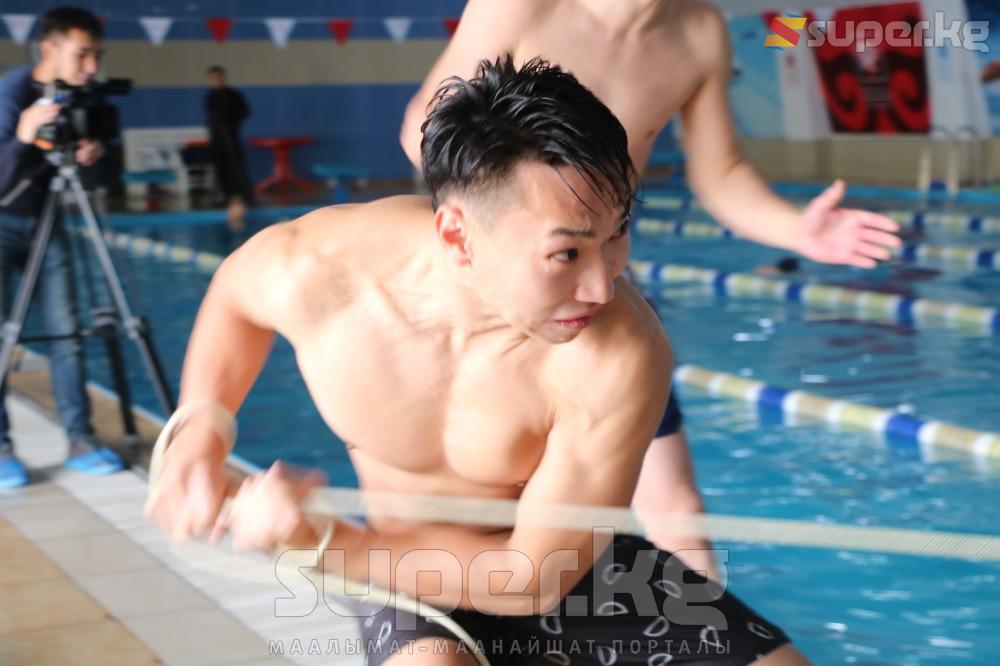 Аркан тартышам деп тайгаланып жыгылган Максат Садырбеков, топ үчүн сууга чөгүп кете жаздаган Кайрат Примбердиев. Жылдыздардын суудагы күч сынашуусу
