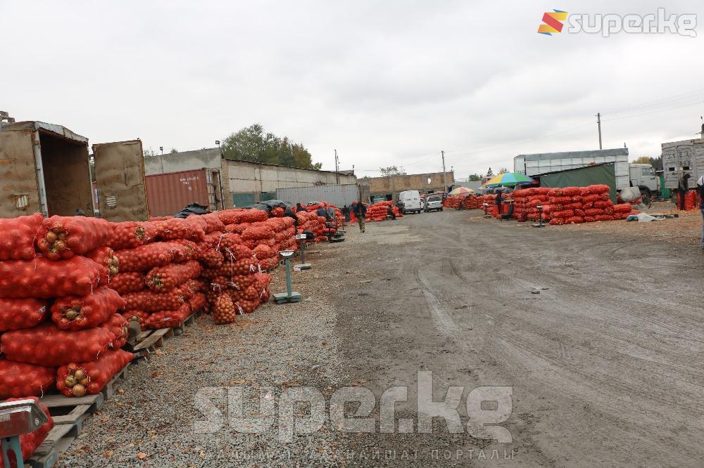 Ошол эле базарда тонналап пияздар өтпөй жатканын өз көзүбүз менен көрүп кайттык. Дүң баасы 8-9 сомдон. Сатуучулар бул баа өтө арзан экенин айтып баштарын чайкашат. Атайын пияз сатылган жерге барганыбызда кызыл каптарда жыйылган пияздар гана болбосо сатуучусу да, алуучу да жок.