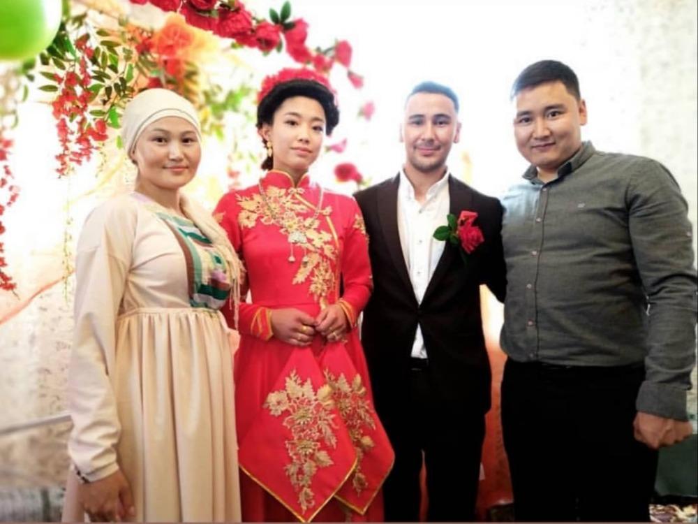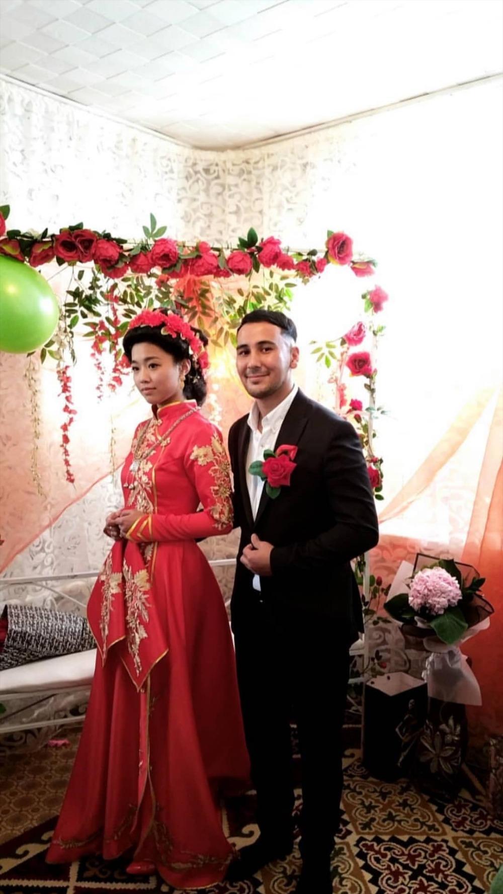 "Кудай үйлөнгөнгө бүгүнкү күндү насип этиптир. Келинчегим Роза 22 жашта, дунган кызы. Экөөбүз мындан 2 жыл мурда социалдык тармактардын биринен таанышып, кыз-жигит болуп сүйлөшүп калганбыз. Ата-энеме сүйлөшкөн кызым дунган экенин айтканымда каршылыгын билдирген жок. Анын үстүнө Роза кыргыз тилин жакшы билет.