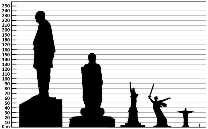"Индиядагы статуя өлкөнүн көз карандысыздыгы үчүн күрөшкөн баатыр, "Темир адам" атыккан саясатчы Сардар Валлабхаи Пателге арналган. Ага "Биримдик статуясы" деген ысым берилди. Статуя Индиянын Гужарат штатындагы Вадодара шаарына жакын аймакка орнотулду. Жалпы узундугу 240 метрге жетет. Ал Нью-Йорктогу "Эркиндик" статуясынан 2 эсе бийик. Ал эми буга чейин эң бийик аталган Кытайдагы Будданын эстелигинен 29 метрге узун", - деп жазылат маалыматта.