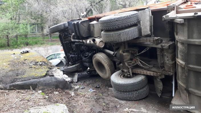 Лейлекте жолдо бараткан КамАЗ оодарылып кетип 3 адам каза болду