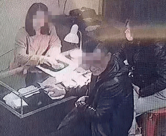 Маалыматка ылайык, 49 жаштагы Хоу аттуу адам өзүнүн шериги, 24 жаштагы Чжоу деген кыз менен сатуучуларга кардар катары көрүнүшкөн. Алар Гуандун провинциясындагы зер буюмдар сатылган дүкөнгө 1 аптадай келип жүрүшкөн. Кылмыш жасаган күнү күндүзү саат 11:00дөрдө келип, нефрит мончогун сатып алуу ниеттери бар экенин айтышкан. Шуруну сырттагы жарыкта текшериш керек деген жүйөө менен Хоу аны алып сыртка чыккан, кыз сатуучунун жанында калган.