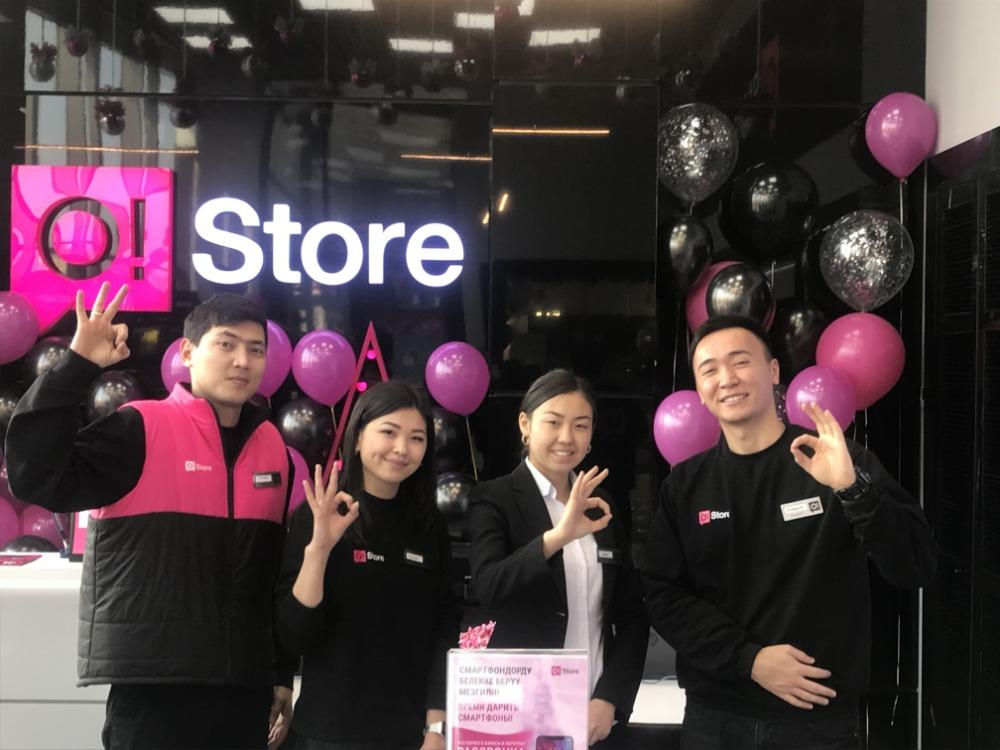 O!Store заманбап дүкөндөрдүн ири тармагы өлкө боюнча 74 учурдун талабына ылайык дүкөндөрдү камтыйт. O!Store дүкөндөрүнөн кыргызстандыктар дүйнөлүк өндүрүүчү-бренддердин сапаттуу смартфондорун сатып алуу жана адистердин кеңешин алуу мүмкүнчүлүктөрүнө ээ болушат. Мындан тышкары, мобилдик оператордун бардык дүкөндөрүнөн 4G Wi-Fi Wingle, 4G-модемдерди жана бардык мобилдик аксессуарларды: телефон каптарын, коргогуч айнектерди, плёнкаларды, шакек-кармагычтарды, кабелдерди, переходниктерди, адаптерлерди, зымсыз акустикалык колонкаларды, Bluetooth кулаккаптарын, тышкы аккумуляторлорду, моноподдорду жана көптөгөн башка нерселерди сатып алса болот.