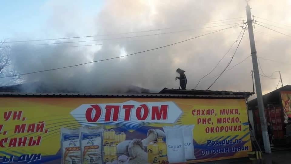 Аламүдүн районунда азык-түлүк дүкөнүнүн кампасынан чыккан өрттү өчүрүү иштери уланууда