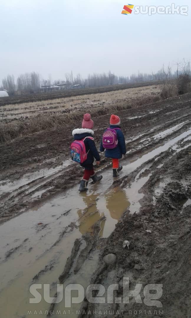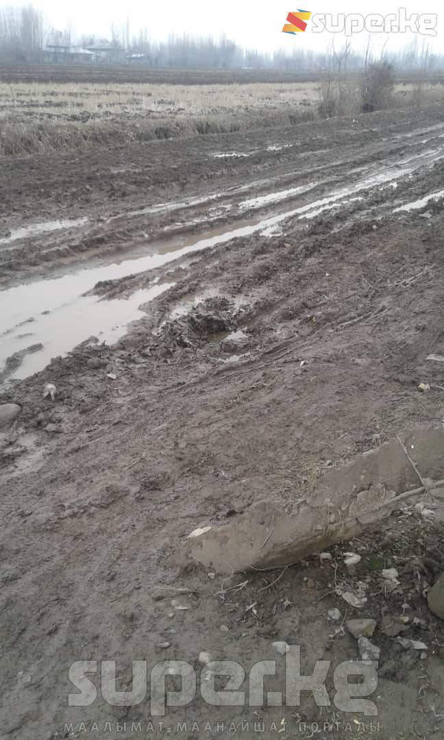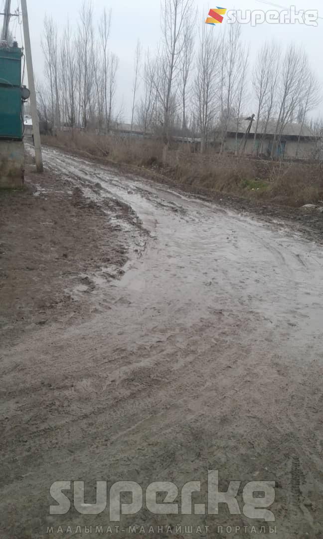 "Мисалы, Ынтымак көчөсүнүн аягы көрүстөнгө барат. Өткөндө 95 жаштагы эне каза болуп, сөөк салынган унаа жолдон тыгылып, көрүстөнгө жетпей "өлгөндүн үстүнө көмгөн" болду. Айыл эли мүрзөгө жеткиче улам унааны түртүп чыгарып атып араң дегенде жетишти. Асфальттап бергиле деп деле талап кылып жаткан эч ким жок. Болгону бала-бакыра басканга ылайыктуу кылып шагыл төгүп коюшса жакшы болмок. Мектепке кеткен балдар үйгө белчесинен баткак болуп келишет. Айыл өкмөттөн түңүлүп, акимге чейин арыз жазганбыз. Жооп жок", - дейт окурман.