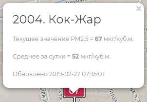 Көк-Жар кичи району - 67 микрограмм (сутка ичиндеги орточо көрсөткүч - 52).