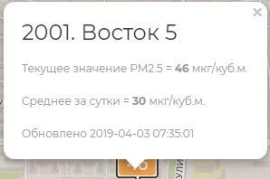 Көк-Жар кичи району - 45 микрограмм (сутка ичиндеги орточо көрсөткүч - 29).