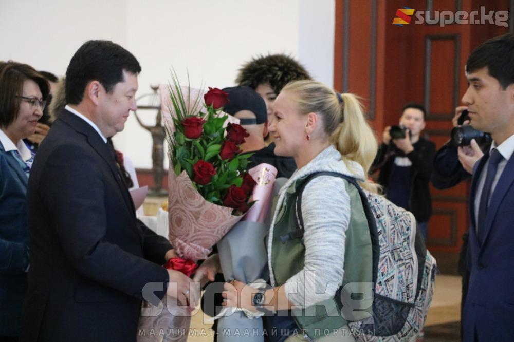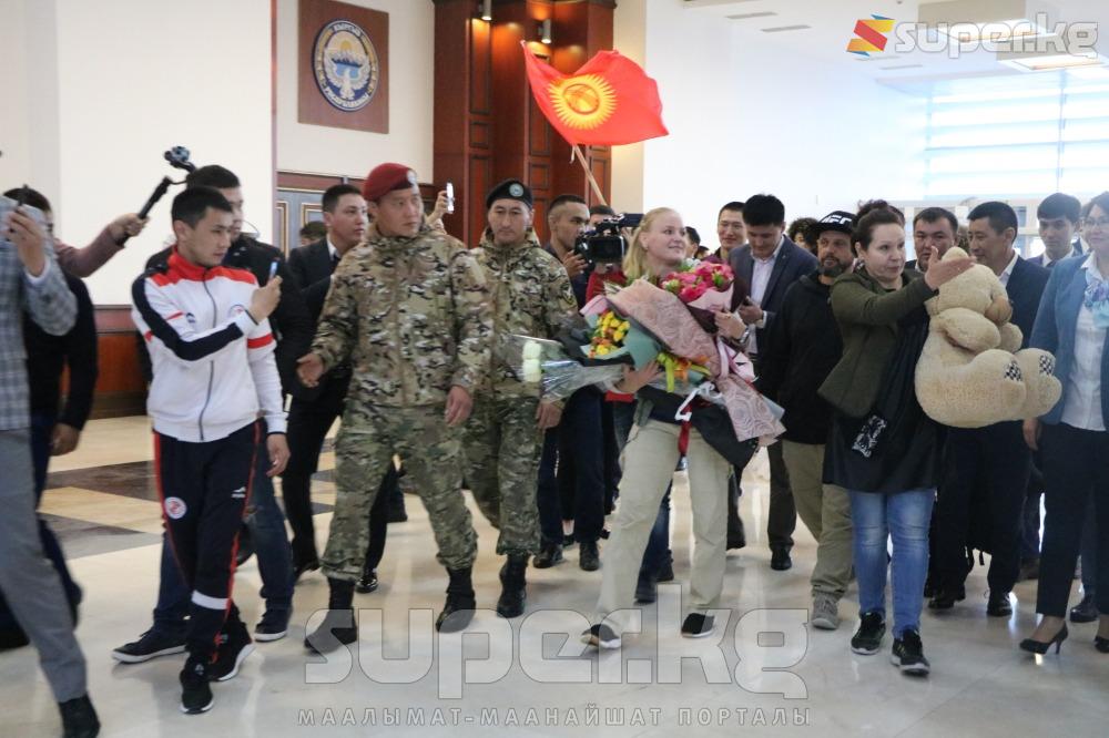 Улуттук филармониянын оркестри, мотоциклчендер тобу жана күйөрмандар. UFC`нин чемпиону Валентина Шевченкону дагы кимдер тосуп алышты? (фоторепортаж)
