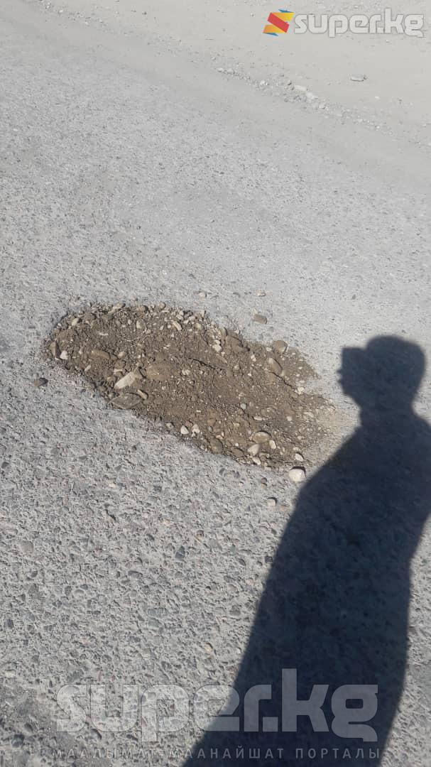 Кечээ, 6-май күнү "Тазалык" муниципалдык мекемеси аң-чөнөктү эптеп топурак менен толтуруп чыкты. Бир жолу жаан жаап, унаалар ары-бери өтүп койсо эле толтурган чуңкурлары кайра ачылып калат. Мындан улам аймактарды өнүктүрүү жылы деген ураан жөн гана кагаз жүзүндөгү кеппи деп ойлойсуң", - дейт окурман.