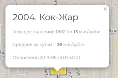 Көк-Жар кичи району - 13 микрограмм (сутка ичиндеги орточо көрсөткүч - 26).