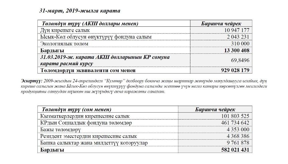 "Кумтөрдүн" 2019-жылдын биринчи чейректеги өндүрүштүк жыйынтыктары