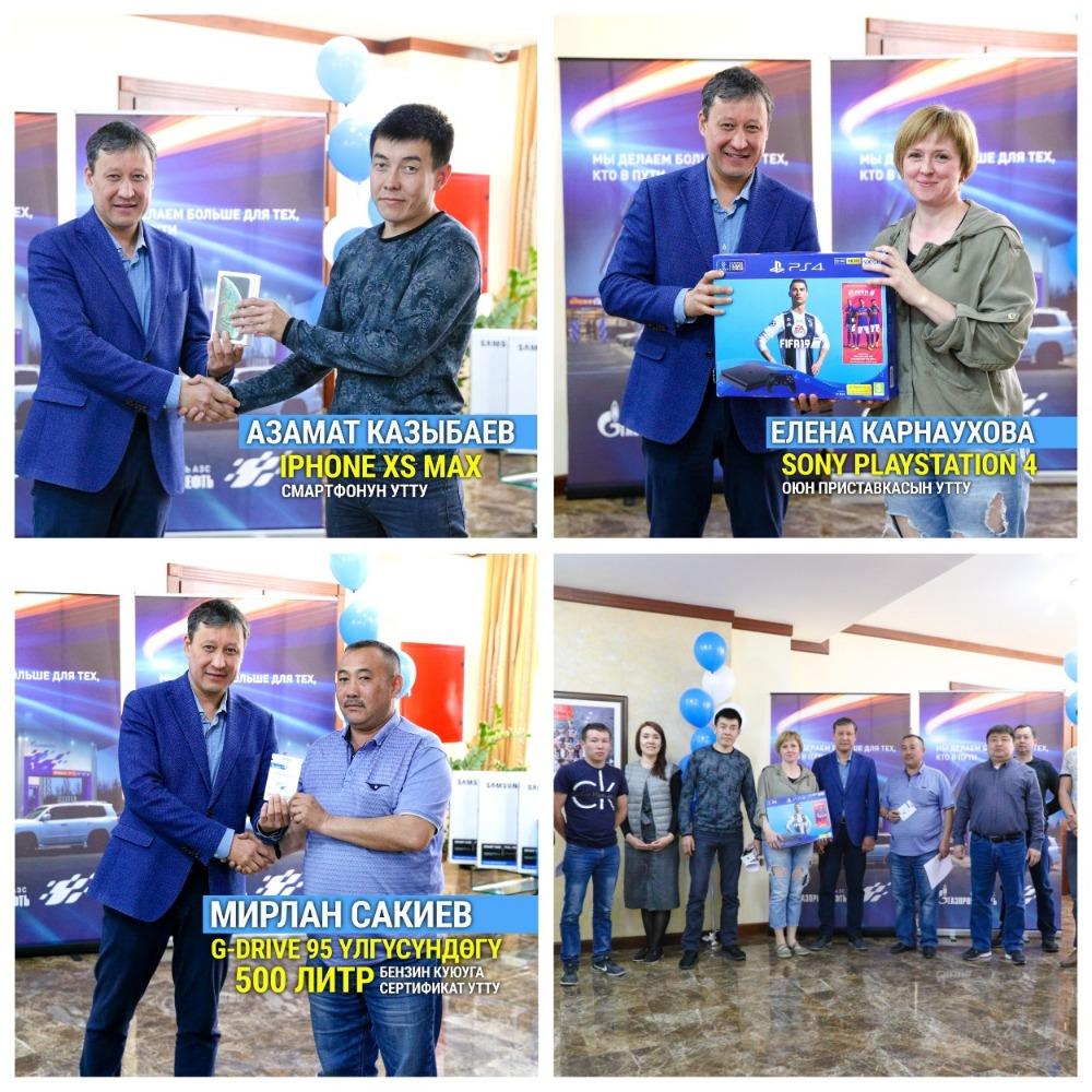 Компаниянын башкы директорунун орун басары Алишер Жолчуев жеңүүчүлөргө акцияга катышканы жана "Газпромнефть" тармагын тандаганы үчүн ыраазычылыгын билдирип, белектерди тапшырды:
