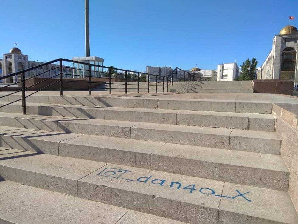 28-майдан 29уна караган түнү Бишкек шаарындагы борбордук "Ала-Тоо" аянтынын көчөлөрүнө белгисиз жаран өзүнүн социалдык тармактардагы баракчасын жазып кеткен. "Тазалык" муниципалдык мекемесинин кызматкерлери көк сыр менен жазылган жазууларды жууп, ал эми мэрия укук коргоо кызматына тартип бузган адамды издөө арызы менен кайрылган.