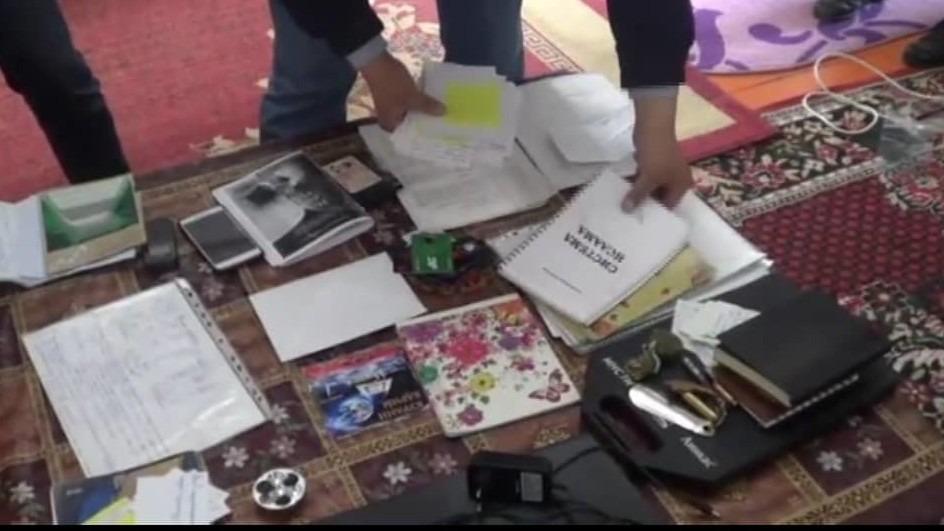 Кызматкерлер кармалган жарандардын жашаган жерин тинтүүгө алышып, жыйынтыгында уюмдун китептерин, документтери жок курал, дары салынган металл идиш, ноутбук, телефон жана SIM-карталар табылган.