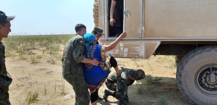 Ал сүрөттө жоокер улгайып калган аялдын унаага түшүп кетиши үчүн тизелеп, аркасын тосуп берген. Казак өлкөсүнүн Өзгөчө кырдаалдар министрлиги билдиргендей аталган сүрөт интернет тармагында көптөгөн "жакты" белгилерин алган.