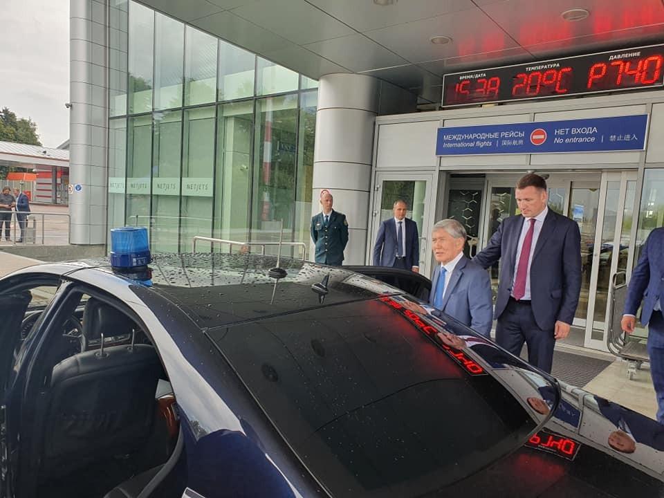 "Учак "Внуково" аэропортуна конду. Экс-президент Алмазбек Атамбаевди жана делегация мүчөлөрүн Федералдык күзөт кызматынын кызматкерлери Кремлге чейин коштоп бара жатат", - деди ал.