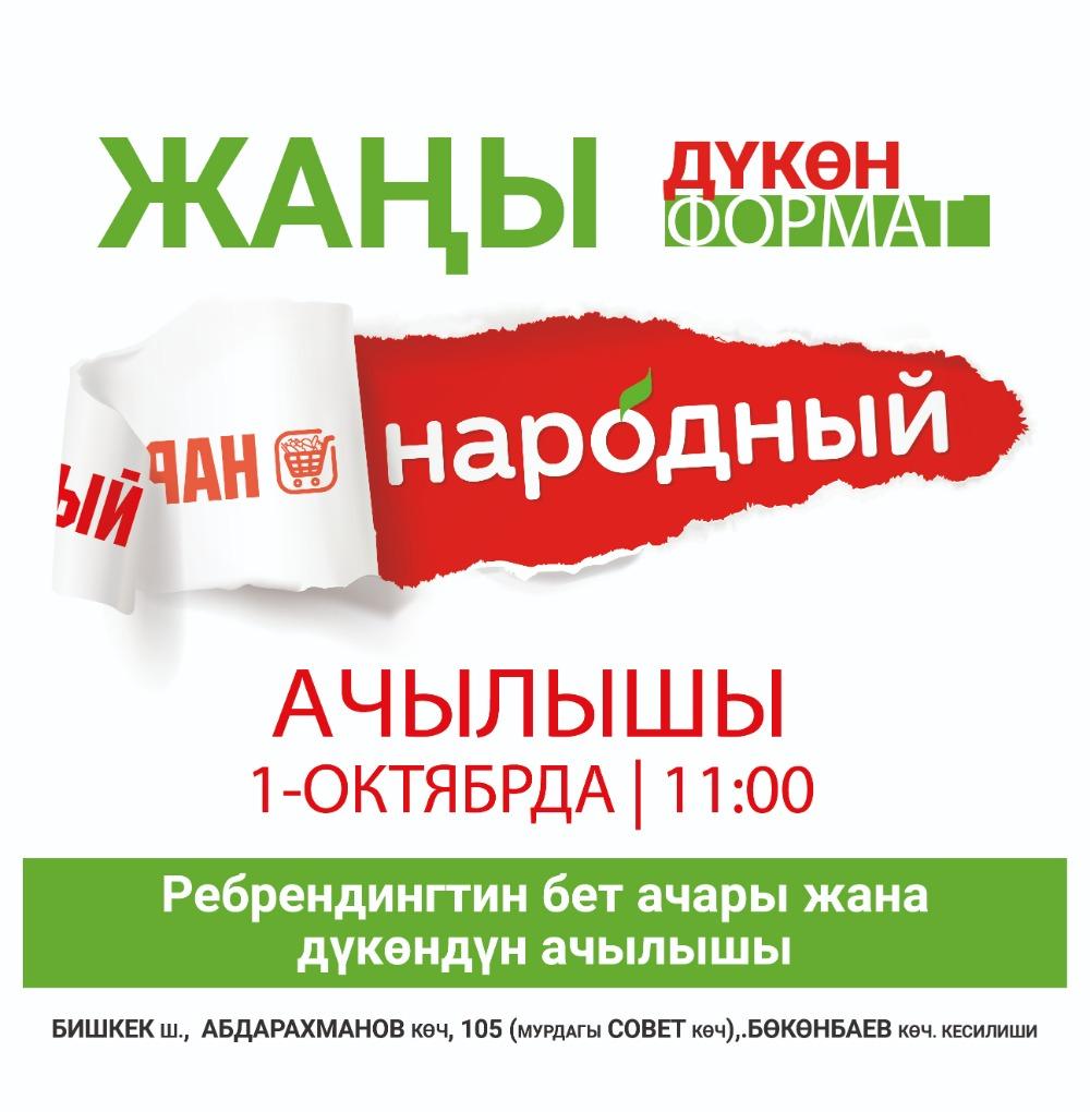 Жаңыланган дүкөндүн ачылышы 1-октябрда саат 11:00дө болот. Абдрахманов жана Бөкөнбаев көчөлөрүнүн кесилишинде жайгашкан жаңыланган алгачкы “Народныйдын” эшиги ачылат.