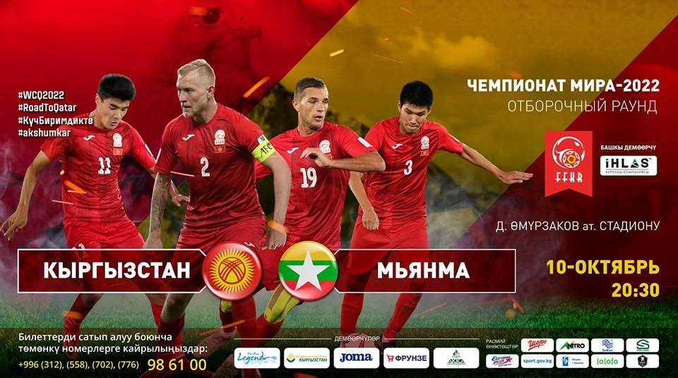 Катар-2022 Дүйнө чемпиондугуна тандап алуу оюндарынын алкагында өтө турган Кыргыз өлкөсү - Мьянма беттешине билеттер бүгүн, 3-октябрда сатыкка чыкты. Бул тууралуу Футбол федерациясы билдирет.