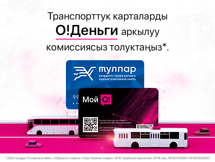 Эске салсак, 1-марттан тартып Бишкектеги коомдук муниципалдык транспорту толугу менен нак эмес төлөмгө өтөт. Эми жол кирени төлөө үчүн «Тулпар» бирдиктүү төлөм картасын атайын аппаратка коюу керек. Жол киренин суммасы автоматтык түрдө алынат. «О!Деньги» сервиси «Грин Телеком Сервис» ЖЧКсы тарабынан кызматтардын жеткиликтүү тизмегинин алкагында көрсөтүлөт.