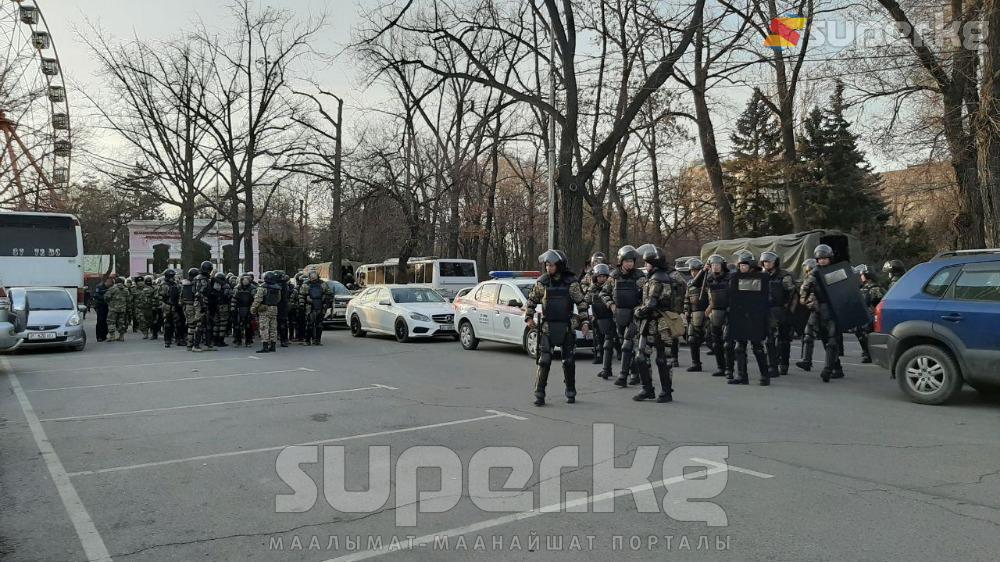 Ошол эле учурда Ак Үйдүн "Панфилов" сейил багы тарабында күч түзүмдөрү топтолуп жатат. Арасында ички иштер министринин орун басары Мирлан Каниметов да жүрөт. Өкмөт үйүнүн бет маңдайында да Бишкек шаарынын райондук ички иштер башкармалыктарынан милиция кызматкерлери автобустар менен келип жатышат.