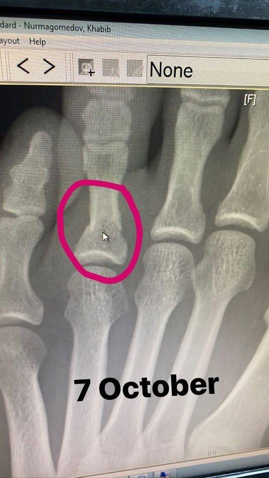 Хабиб Нурмагомедов Жастин Гэйтжи менен боло турган беттешке чейин бутунан алган жаракатынын сүрөтүн көрсөттү