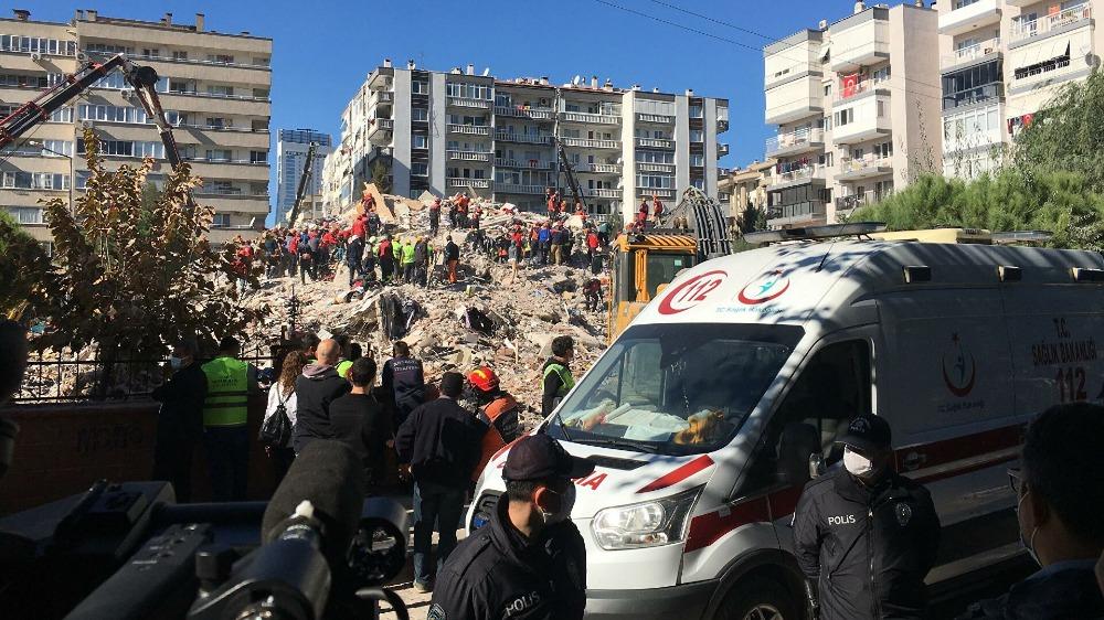 "Измирдеги жер титирөөдөн кийин 110 адамдын сөөгү табылды. 1027 адам ар түрдүү мүнөздөгү жаракат алды. Биз үмүтүбүздү үзбөйбүз, издөө-куткаруу иштери акыркы адам кыйроодон чыгарылганга чейин уланат", - деген өлкө башчы Режеп Тайип Эрдоган.
