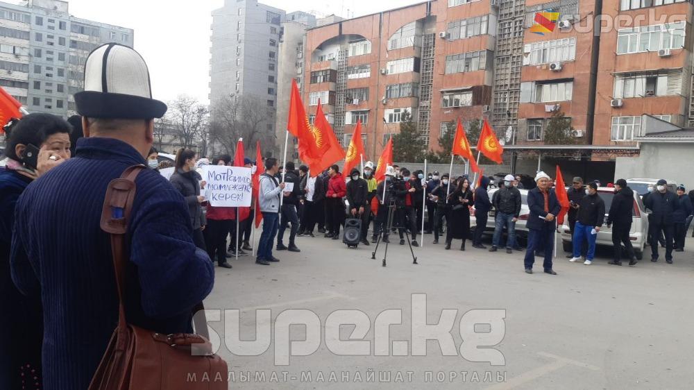 Матраимовду колдогондор Биринчи Май райондук сотунун имаратынын алдына келишти