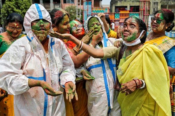 Индияда Холи фестивалы 28-мартта башталган. Коомдук жайларда топ-тобу менен жүрүүгө тыюу салынганына карабастан, өлкөнүн тургундары көчөлөргө агылып чыгышты. Бул тууралуу дүйнөлүк маалымат каражаттарында жазылууда.