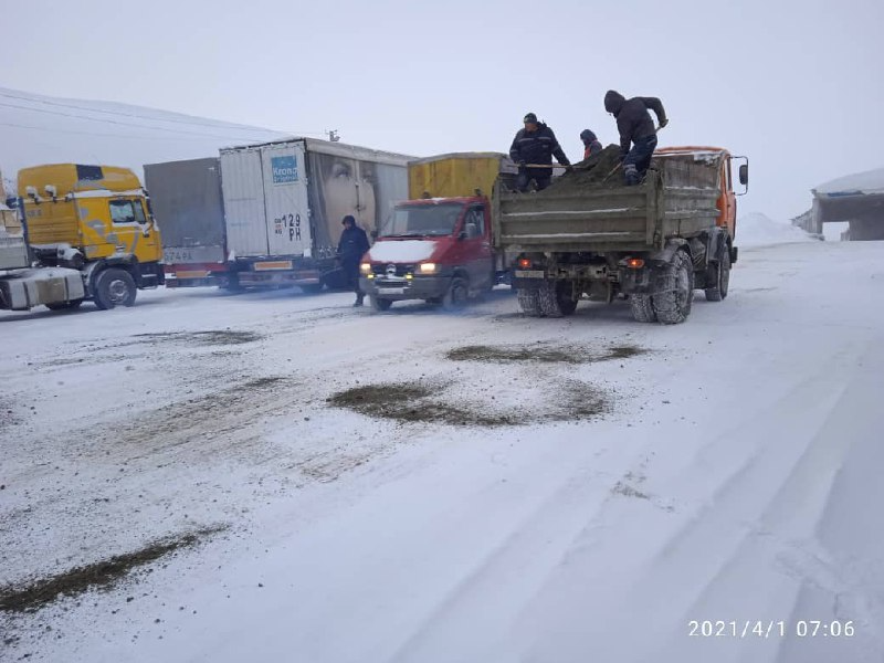 "Айдоочуларды кар чынжырларын алып, каршы тилкеге чыгып кетпөөгө (тыгын пайда болгон учурда) жана тайгалакка каршы инерттик материалдарды чачуу үчүн иштелип чыккан атайын шаймандардын тыгынына жол бербөөгө чакырабыз. Жайкы дөңгөлөктөр менен ашууга барбаңыз, анткени ашууларда кар жаап, муз пайда болушу мүмкүн.