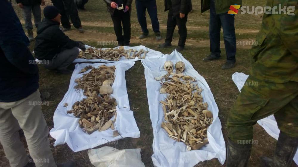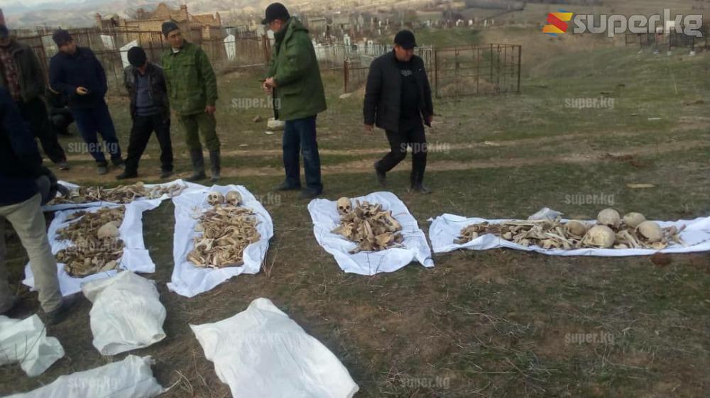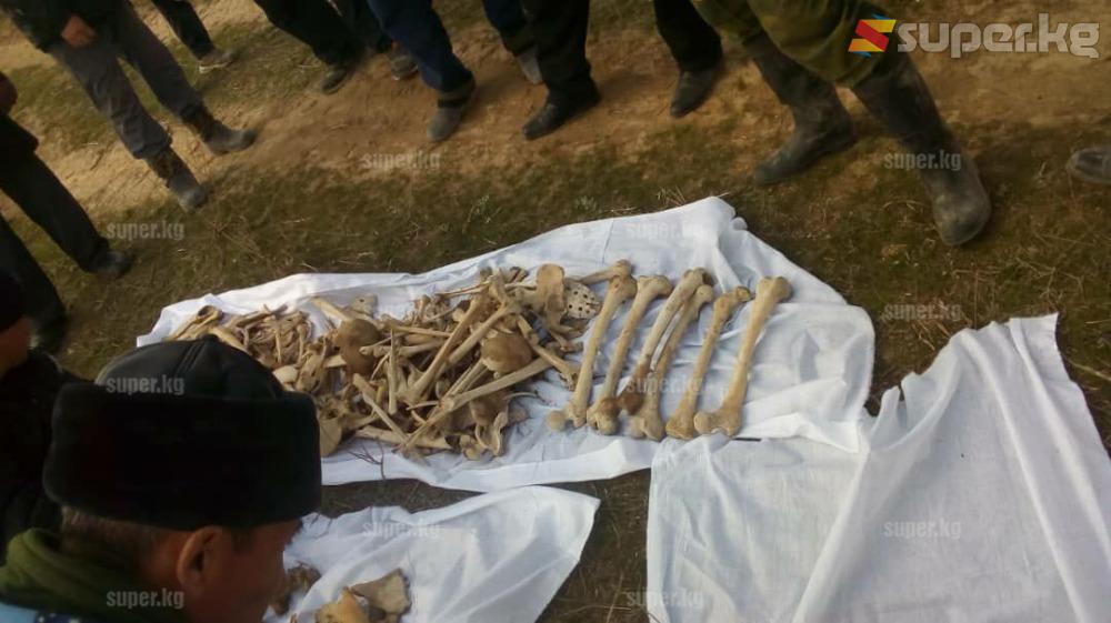 Эки баламды ээрчитип алып, чыгып калган сөөктөрдү көмүп жатканбыз. Бирок акыркы учурда сөөктөр массалык түрдө чыгып кетти. Ошондуктан элден жардам сурадым. Кечээ район боюнча эл, шаар мэри, акимдин катышуусунда сөөктөрдү терип, атайын жай казып көмүп, куран окуттук. 15 мүшөктөй сөөк чогулттук. Сөөктөрдүн баарын тизе алган жокпуз. Бирок аларды бөлүштүрүп көмдүк. Суу сактагычтын жээгин адамдын сөөктөрүнөн тазаладык.