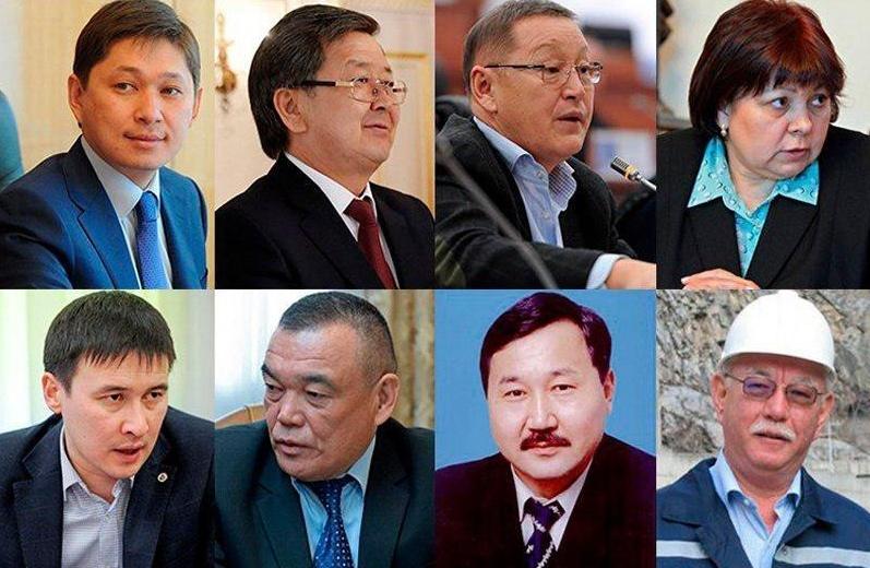 Алар: мурунку премьер-министрлер Жантөрө Сатыбалдиев, Сапар Исаков, экс-депутат Осмонбек Артыкбаев, "Улуттук энергохолдингдин" мурунку директору Айбек Калиев, "Электр станциялары" ишканасынын мурунку жетекчиси Салайдин Авазов, "Электр станциялары" ишканасынын башчысынын мурдагы орун басары Жолдошбек Назаров, Бишкек жылуулук электр борборун модернизациялоону башкаруу боюнча топтун мурдагы аткаруучу директору Темирлан Бримкулов жана мурдагы каржы министри Ольга Лаврова.