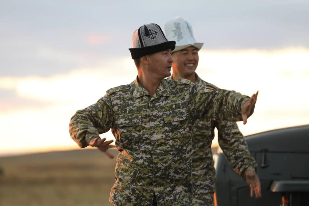 Ага ылайык, кыргыз аскер кызматкерлери концерттик программа даярдап, көпчүлүктүн купулуна толгон кара жорго бийин топ болуп бийлешти.