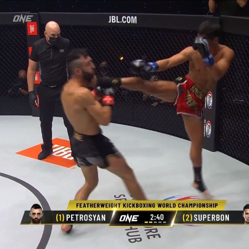 Беттештин экинчи бөлүгүндө таиланддык мушкер Петросяндын башына буту менен таамай кубаттуу сокку узаткан. Петросян андан кийин эс-учун жоготуп чалкасынан кулап түштү.