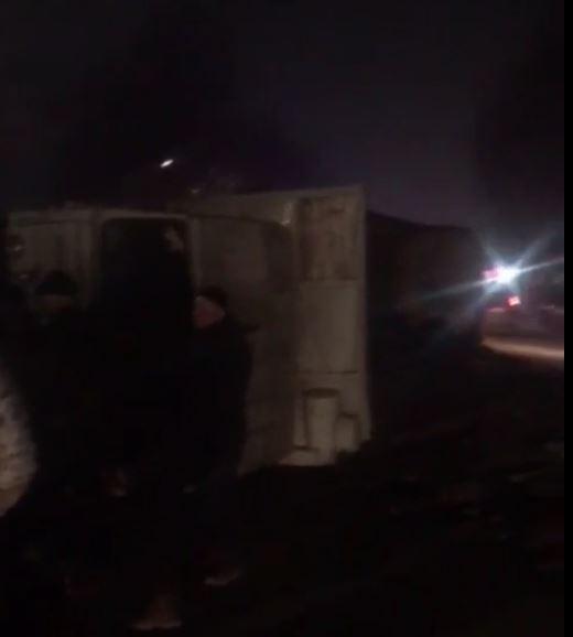 Видеодо көрүнгөндөй, КамАз жүк ташуучу унаасы көмүрү менен кошо жолдун так ортосуна кулаган. Кырсык Махатма-Ганди көчөсүндө болгон.