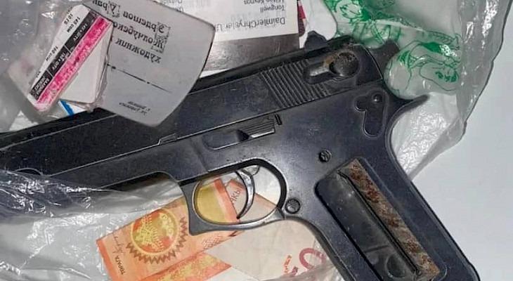 Ошондой эле анын жанынан белгисиз үлгүдөгү тапанча табылган.