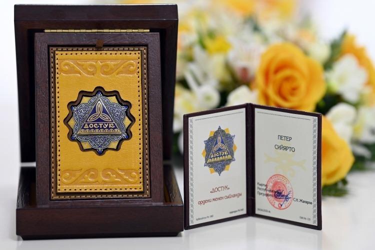 Президент Садыр Жапаров Петер Сийяртону «Достук» ордени менен сыйлады, анын кыргыз-венгер мамилелерин, стратегиялык өнөктөштүгүн жана достугун чыңдоого кошкон жеке салымын белгиледи.