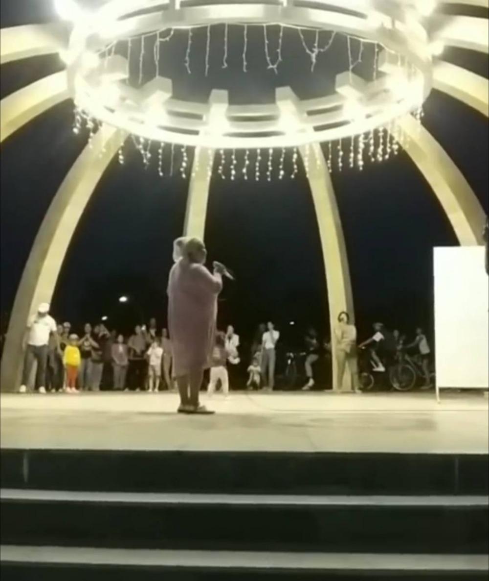 Кечээ, 18-июнь күнү Бишкектеги Ынтымак-2 сейил багында "Титаник" тасмасындагы "My Heart Will Go On" аттуу ырды жандуу үн менен аткарган аял көпчүлүктү суктандырды.