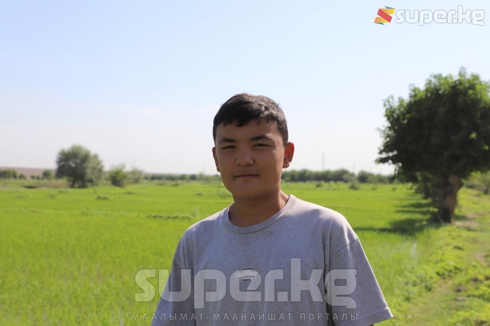 "Мен 13 жаштамын. Акыркы 3-4 жылдан бери ата-энеме жардам берип келем. Күрүч 15-апрелден кийин эгиле баштайт. Бирок күрүчтөр сортуна жараша, атап айтканда айрым сорттор июнь айында дагы эгилет. Бышуу убактысы да ар башка", - дейт Жарматов.