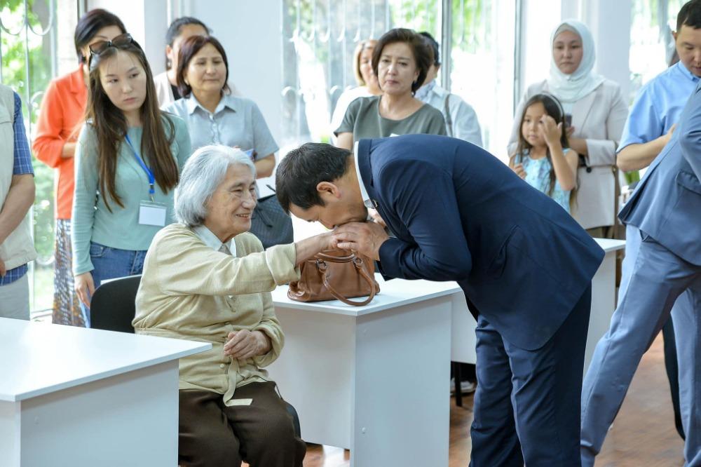 "Аялзатына болгон сый-урматтын белгиси". Нуржигит Кадырбековдун Роза Айтматованын колун өпкөн сүрөтү талкууга алынды
