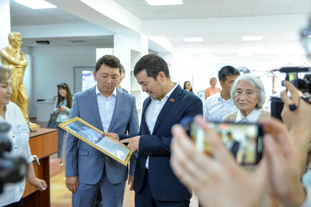 Талкуу жараткан сүрөт бүгүн, 21-июнда борбор калаабызда жаңы форматка ылайыкталып оңдоп-түзөөдөн өткөн Чыңгыз Айтматов атындагы китепкананын ачылышында тартылган. Бул туурасында депутаттын өзү менен байланышканыбызда маалым болду.