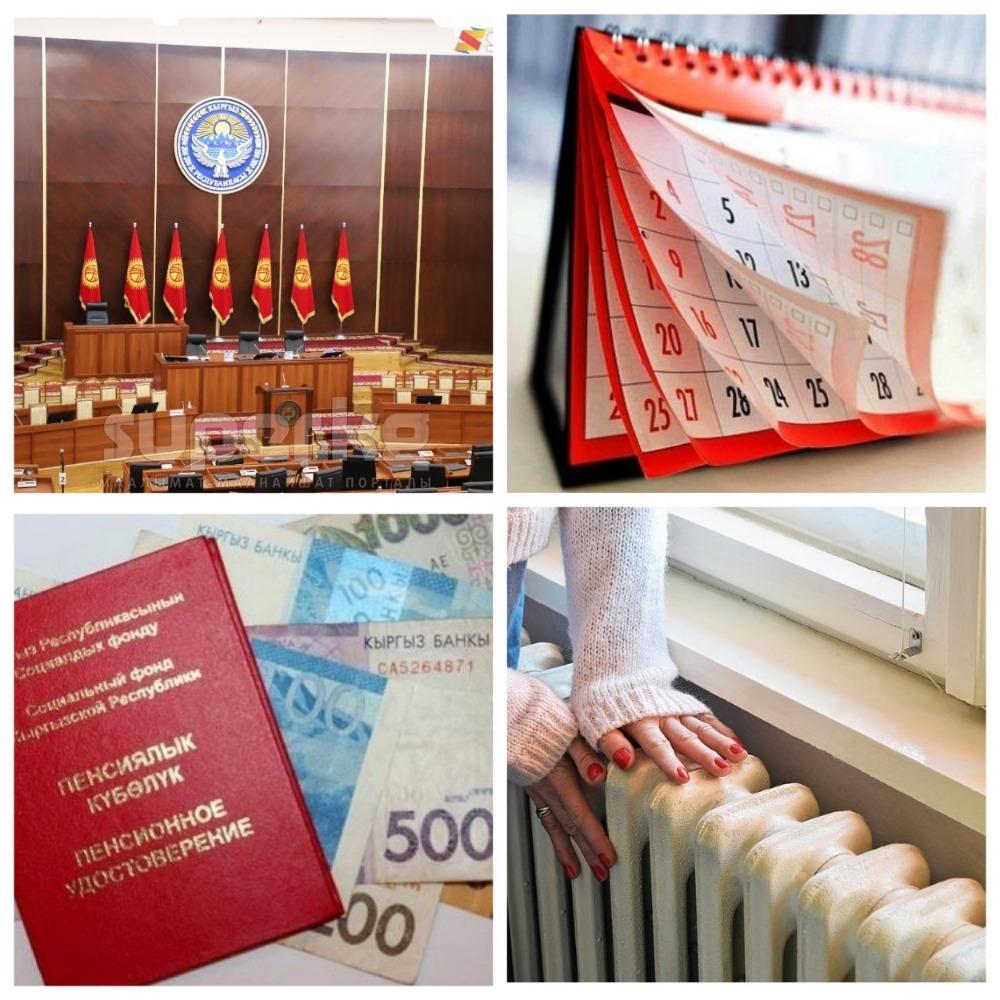 Кыргызстандыктар ноябрда катары менен 4 күн эс алышат. Буга удаа Социалдык фонд октябрдан тарта көбөйтүлгөн пенсиянын орточо өлчөмүн айтты. Маалымдалгандай, буга чейин өлкөдө пенсиянын орточо өлчөмү 6 100 сомдун тегерегинде болчу. Ал эми Каракол шаарында Кыргызстан боюнча эң биринчи таштандыны кайра иштетүүчү завод курулмай болду. Ошону менен бирге ишти аткаруу максатында белорусиялык компания менен келишим дагы түзүлдү.