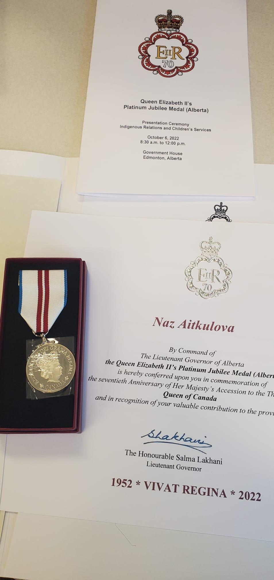 Канадада Назгүл Айткулова ханыша Елизавета II'нин Платиналык юбилейинин медалы менен сыйланды