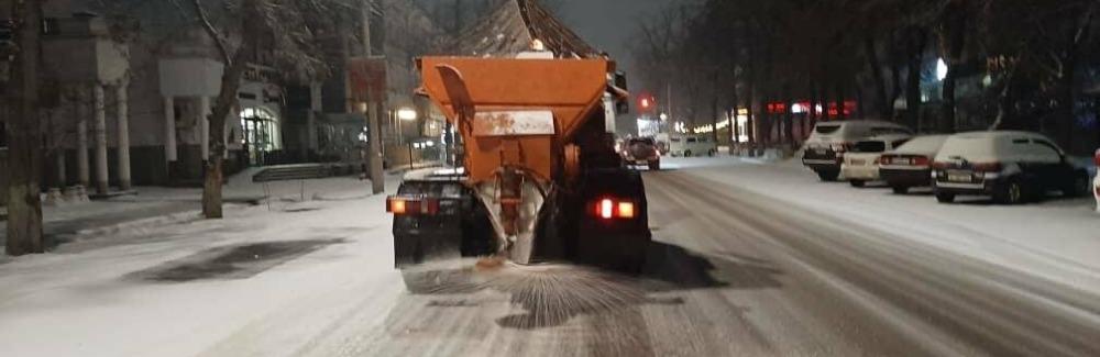 "Тазалык" муниципалдык ишканасы түнү бою унаа жүрүүчү жолдорду жана тротуарлардагы карды тазалап, жолдорго туз чачуу иштерин жүргүздү.