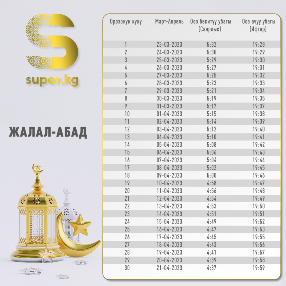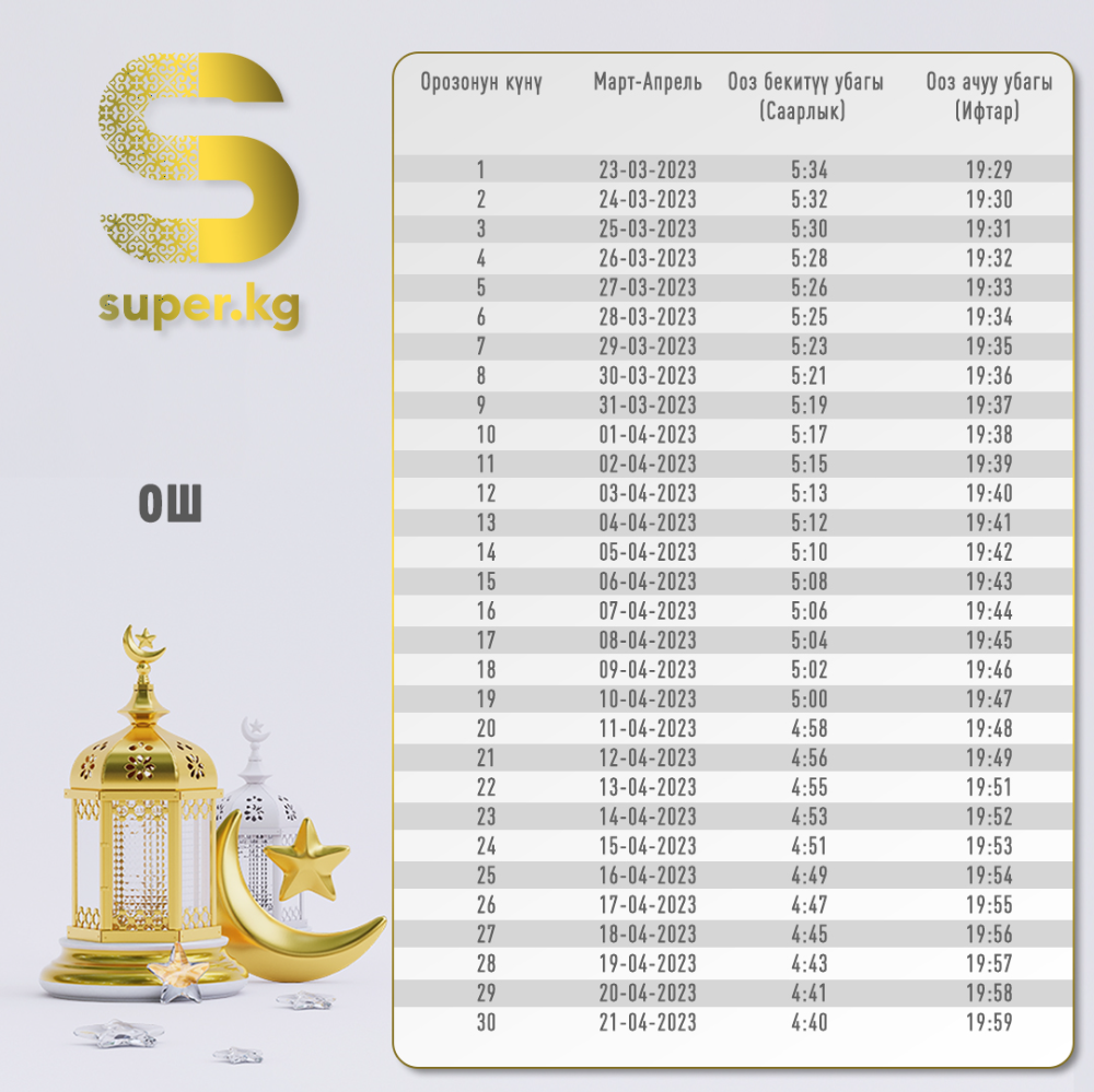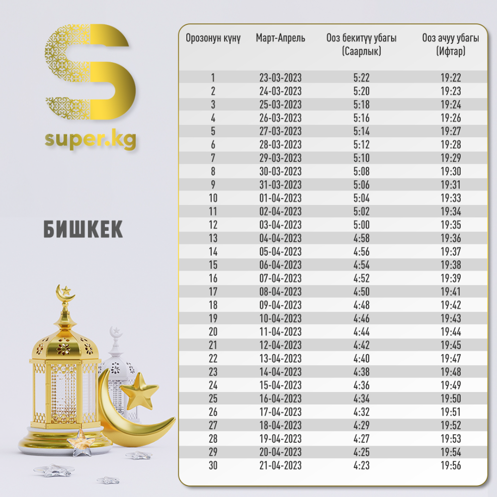 SUPER.KG порталы окурмандары үчүн Орозо календарын даярдады. Кымбаттуу окурман, орозоңуз кабыл болсун!