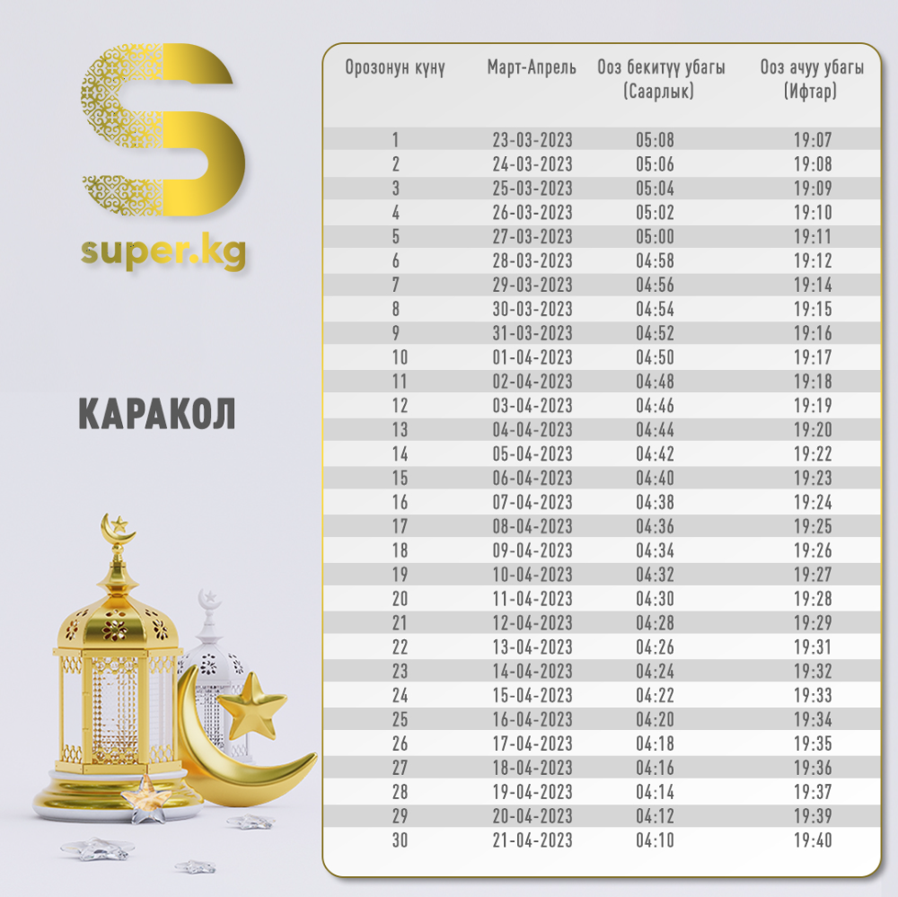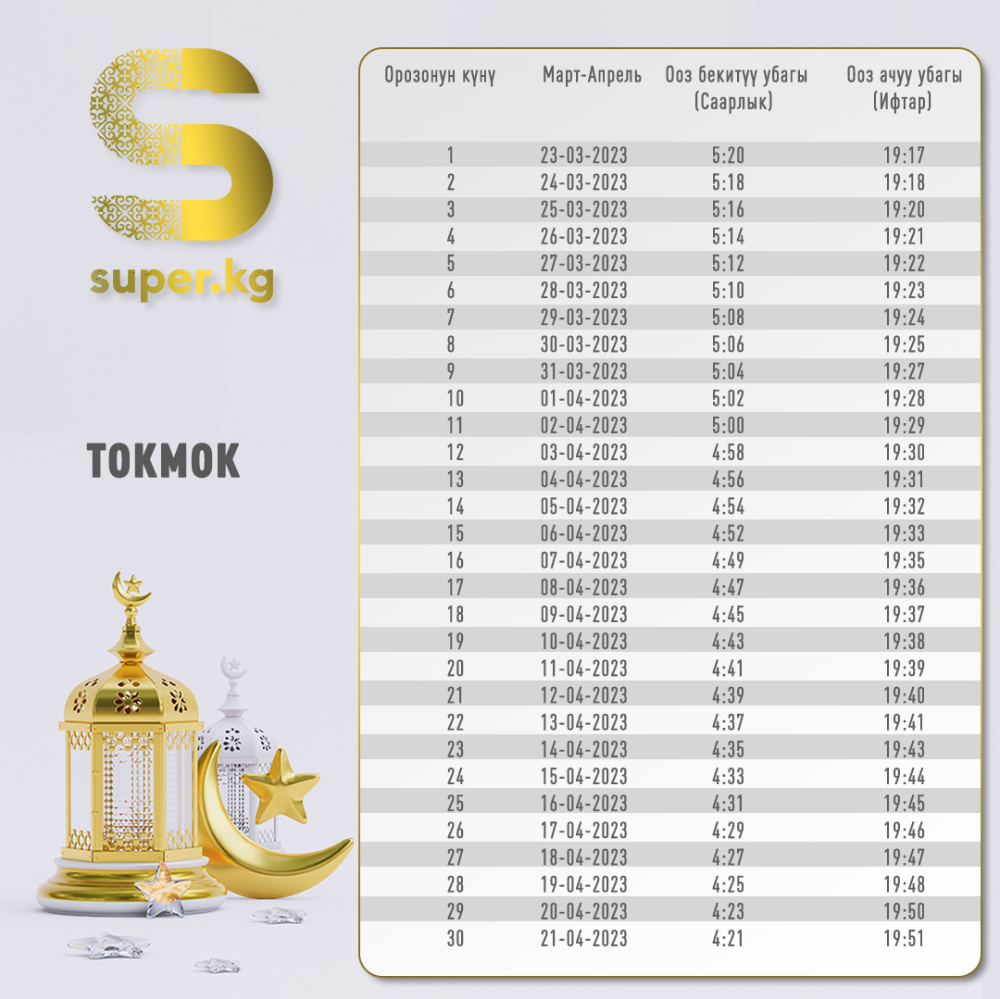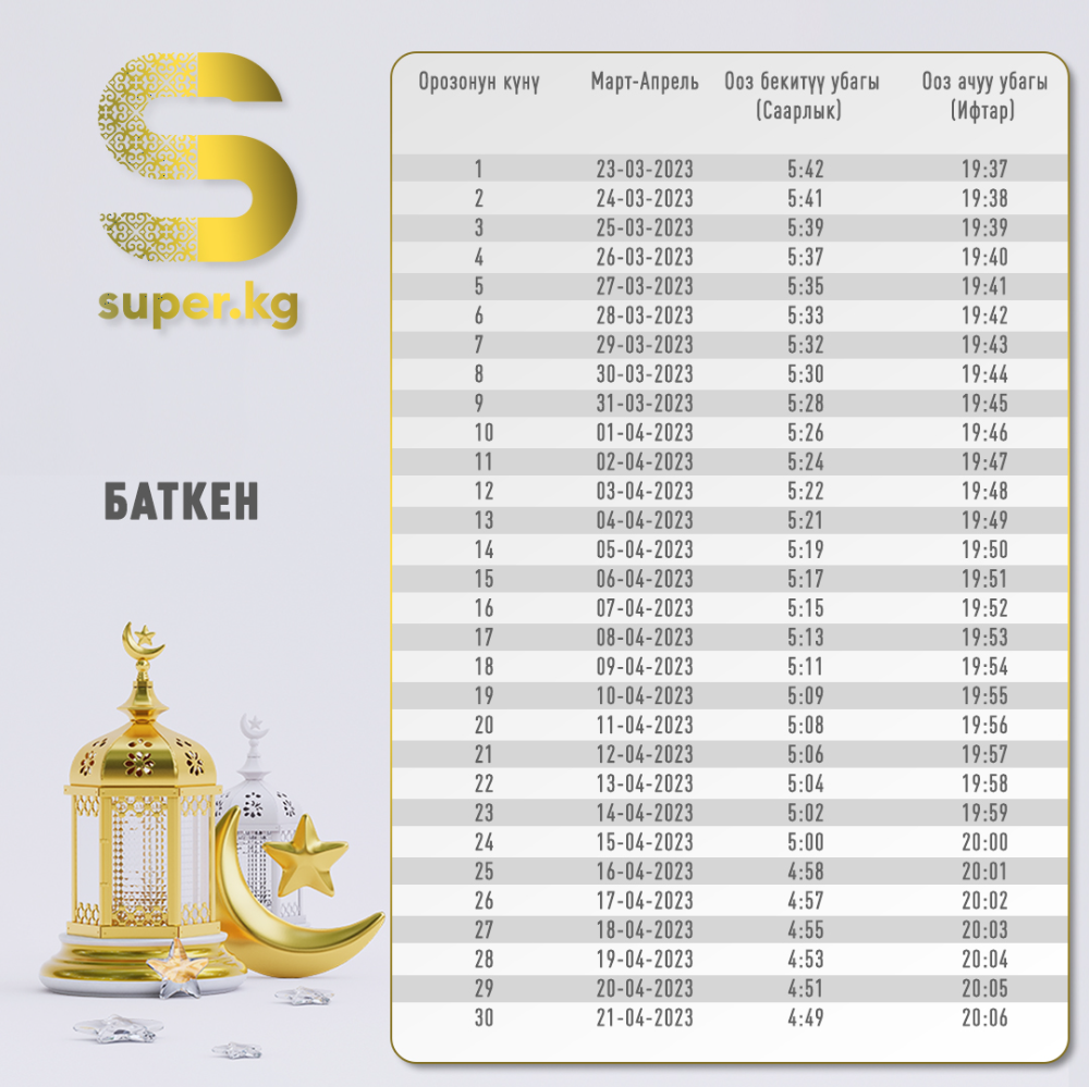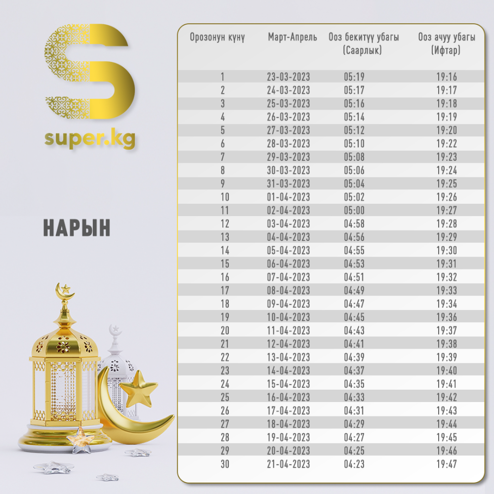 SUPER.KG порталы окурмандары үчүн Орозо календарын даярдады. Кымбаттуу окурман, орозоңуз кабыл болсун!