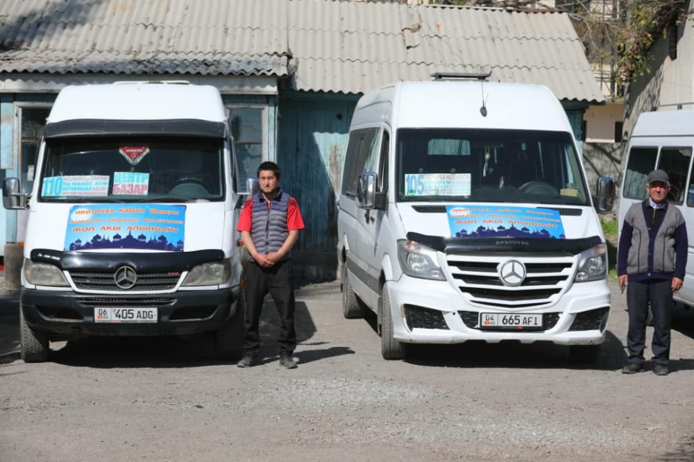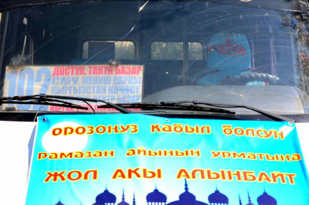 Аталган кичи автобустарда "Орозоңуз кабыл болсун. Орозо айынын урматына жол акы алынбайт!" деген жазуу илинген.